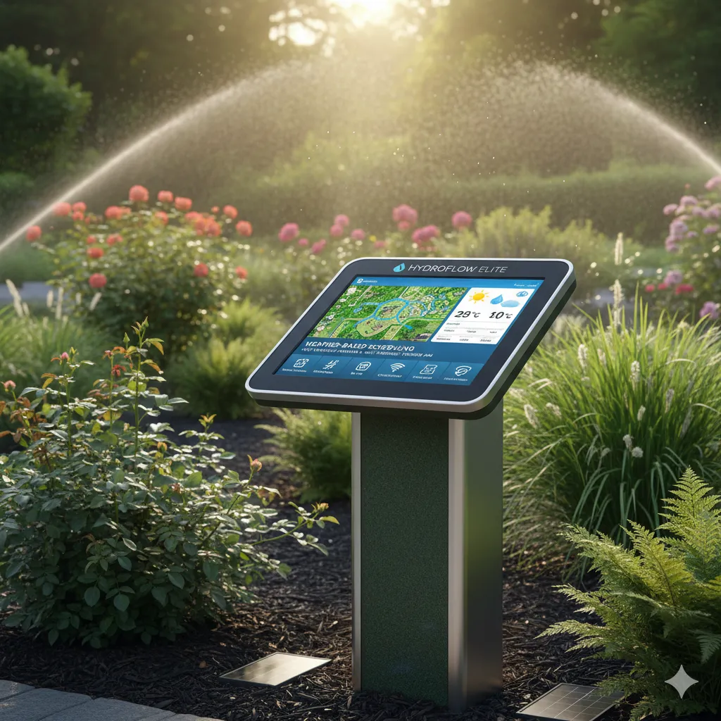 Smart irrigation controller with 16 zones and real-time weather integration. Automatic scheduling adjusts based on forecast data. Mobile app provides remote access and water usage analytics.